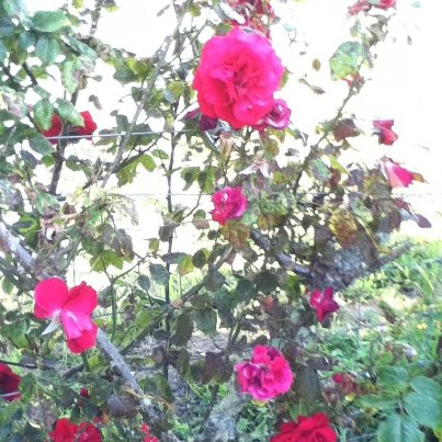 I've been pottering in the garden. There is still SO much to do. I still need to start my vege garden. There are lots of lovely surprises happening in our garden though. Flowers are popping out all over the place and in particular roses. Yellow ones at the front of the house and red roses along the fence line. It looks like we may have peach coloured roses appearing around the water tank. I'm watching and waiting.