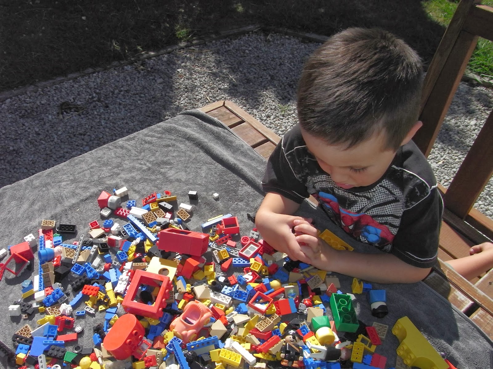 When we were at the beach on the weekend there was a pile of items outside one of the houses with a "FREE" sign. We wandered over and found a box of Lego pieces. Score! We took the box home and I soaked and washed them all up. Here they are drying in the sun. Tom loves Lego after receiving his very first set at Christmas. I looking forward to the many years to come of standing on and sucking the pieces up the hoover.